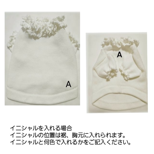 イニシャルは、胸元、裾に入れられます。