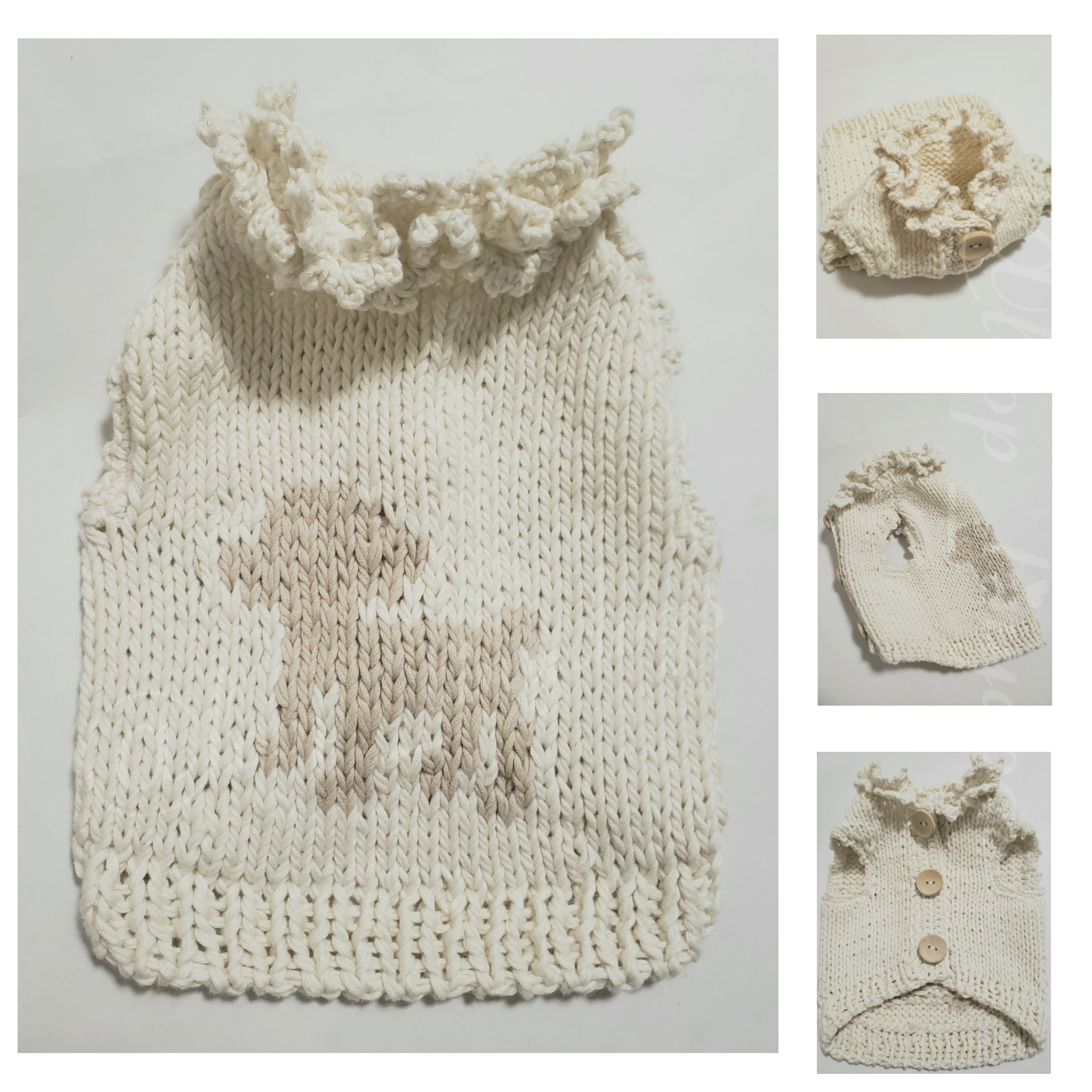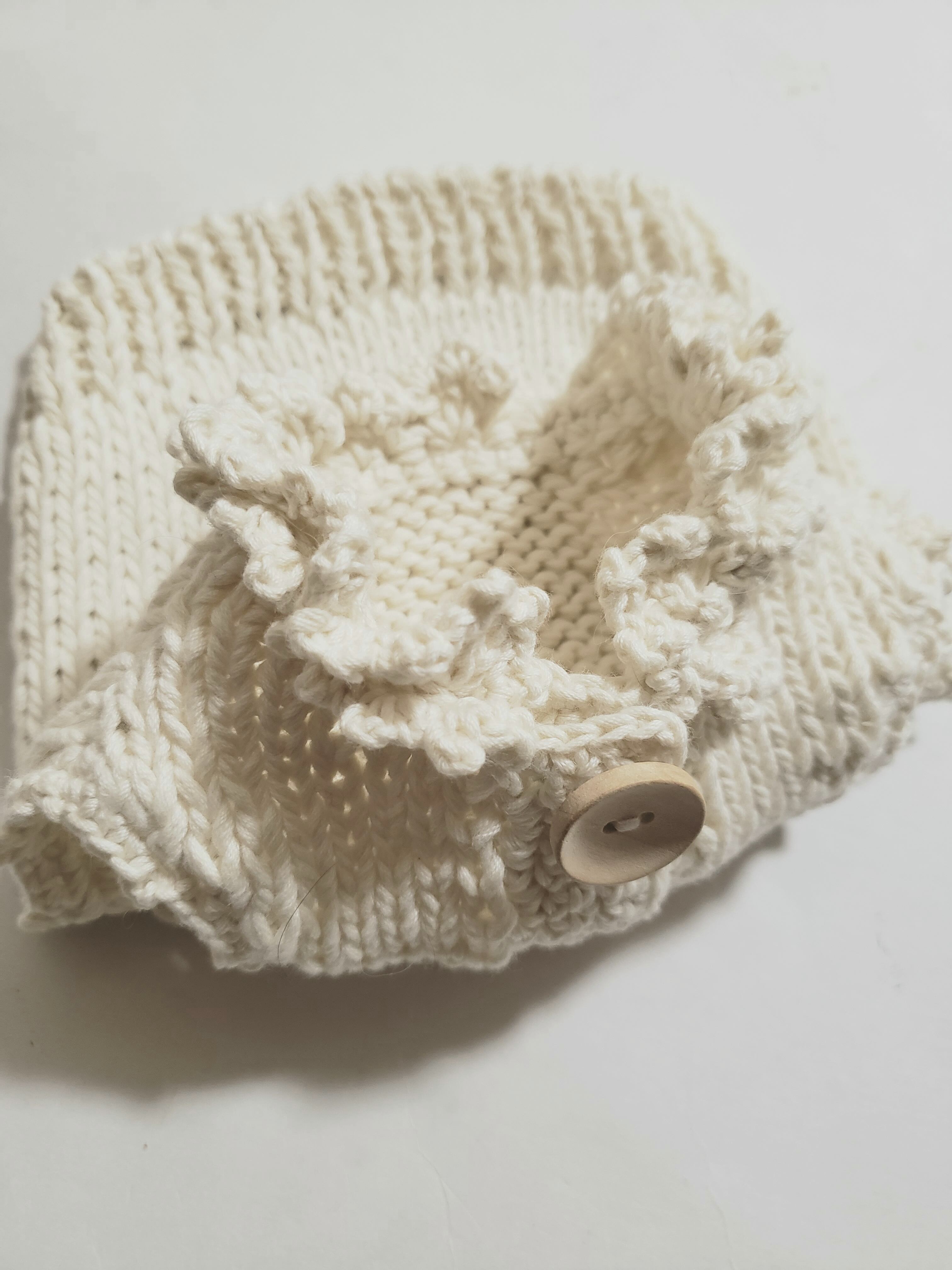 コットンベスト/プードル編み込み/フリル襟/前開きベスト/胴回り32cm