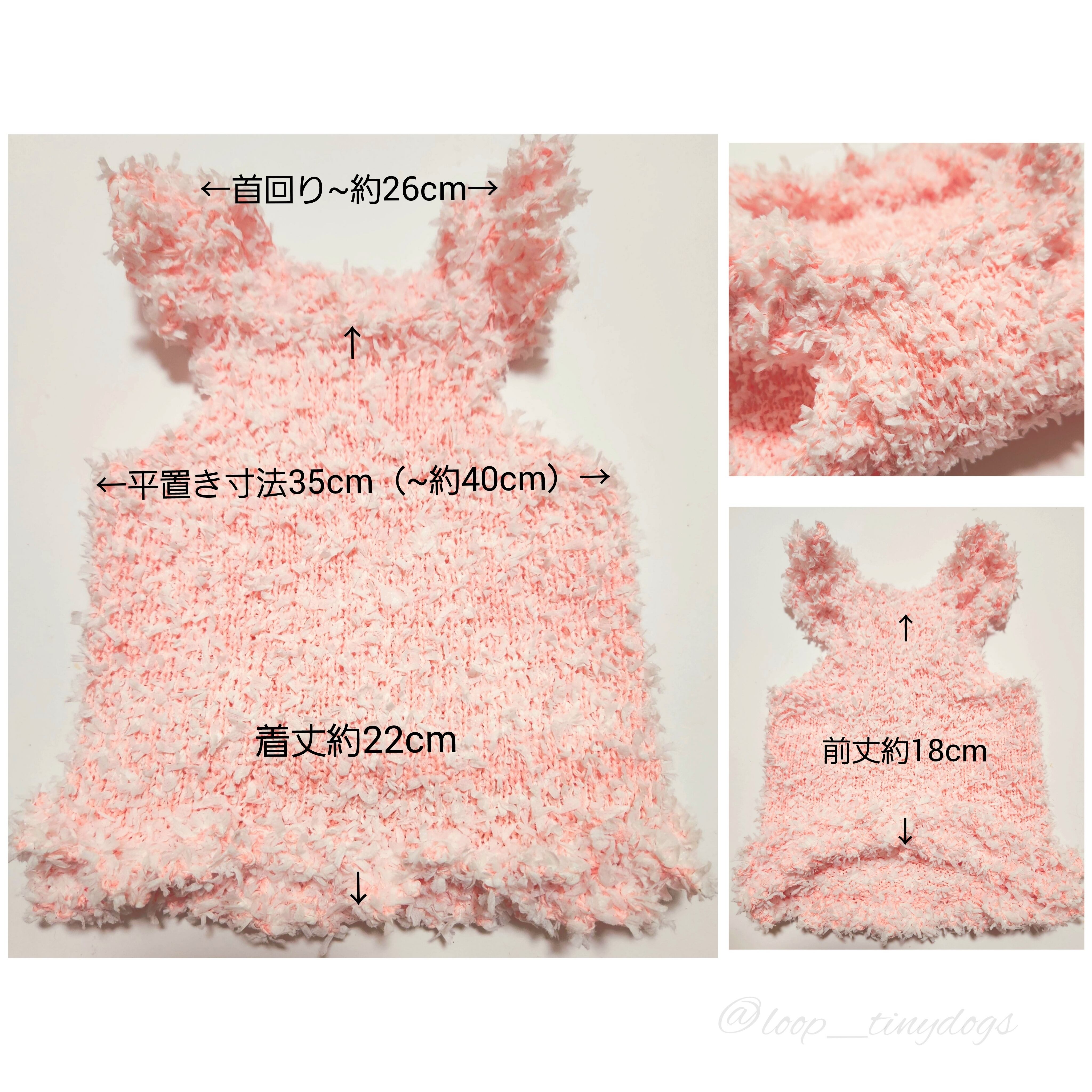 オールシーズンキャミ(コーラルピンク+オフ白ヒラヒラ引き揃え)胴回り35~40cm/着丈約22cm
